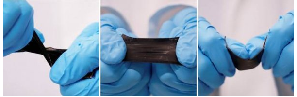 这些薄片像屋顶瓷砖一样重叠,电池弯曲时不会彼此失去接触。如果薄片之间确实失去了接触,那么电力仍然可以通过含碳复合材料传递。电池有一个水基凝胶电极,使用高浓度的锂盐。研究人员表示,这种电池有许多潜在的应用。一个例子是让电池直接缝在织物上。