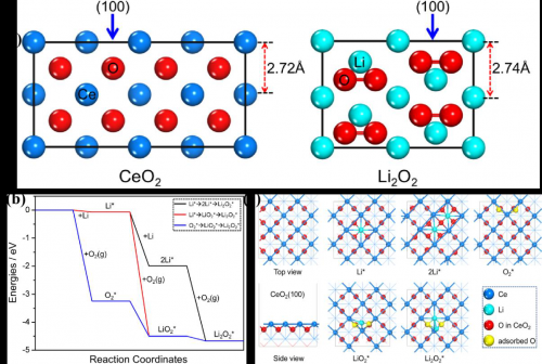(a)CeO2(100)和Li2O2(100)表面的结构示意图
