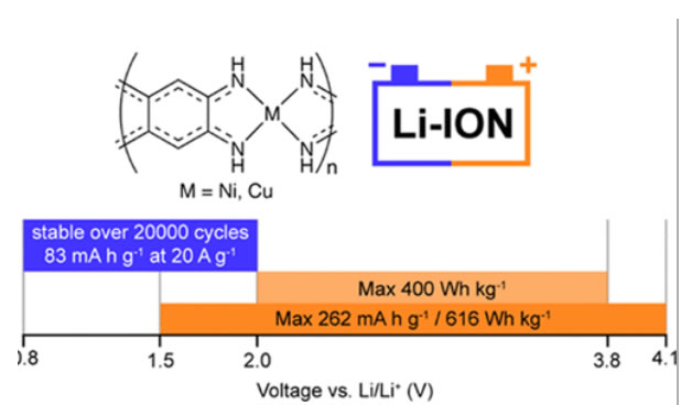 充放电速率是锂离子电池的关键特性之一。大多数现代商用电池都需要至少一个小时才能充满电,应用范围受到了巨大的限制,特别是限制其用于电动汽车。而最常用的阳极材料 – 石墨等活性材料随着充电速度的提升,容量会显著下降。为了在保持高充电率的同时,让电池容量保持较高水平,活性电极材料必须具备高电子和离子导电性,而新发现的配位聚合物由芳香胺和镍或铜等过渡金属盐组成,正符合该要求。尽管此类化合物前景很好,但是研究人员仍未探索是否它们能够应用于锂离子电池。