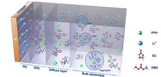 这一层中的锂离子因表面电荷作用脱离溶剂化壳,形成“裸离子”,其扩散速率显著高于体相电解质中的离子。
