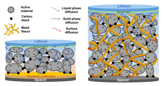 这让电池制造商陷入了两难境地:为了使离子在合理的时间内从电极的一侧扩散到另一侧,只能限制电极厚度;但如果将电极做得非常薄,电池能量密度就会下降。