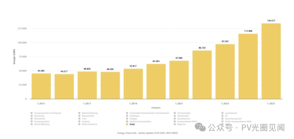 据弗劳恩霍夫太阳能系统研究所(ISE)提供的数据,2025年上半年,许多欧洲国家的太阳能发电量创下历史新高。