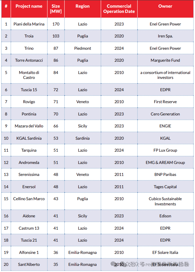 03意大利Top 20光伏电站:新项目崛起,老电站退场