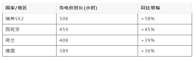 ⚡ 瑞典SE2地区负电价时长506小时(全欧最高)