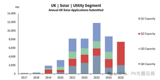 2025年,英国太阳能装机容量已突破2GWp,迎来近十年来最佳开局,同时还有3.GWp的大型地面光伏项目正在建设中。
