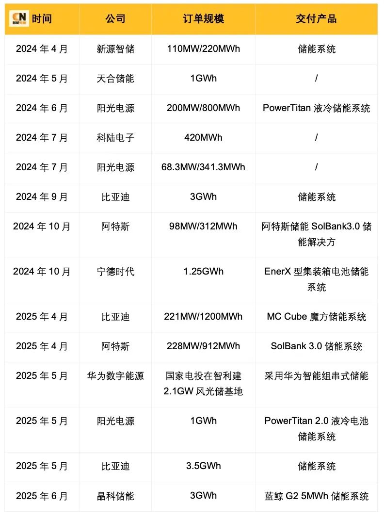 从具体订单来看,比亚迪表现颇为亮眼:2024年9月与西班牙发电商Grenergy签订3GWh储能系统协议,2025年5月又追加3.5GWh订单,合作总量达6.5GWh,其MC Cube魔方储能系统以高集成度适配智利矿业与电网需求。