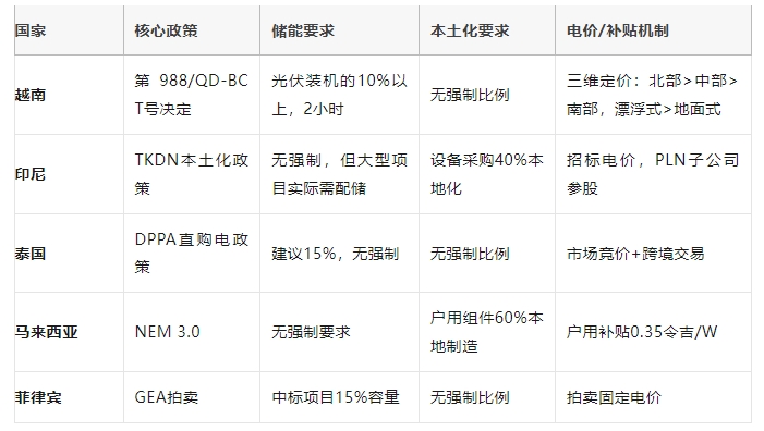 1.政策精细化:越南三维定价、印尼TKDN等模式推动储能从“可选”变“刚需”,2030年区域装机或突破40GWh(年增28%)。