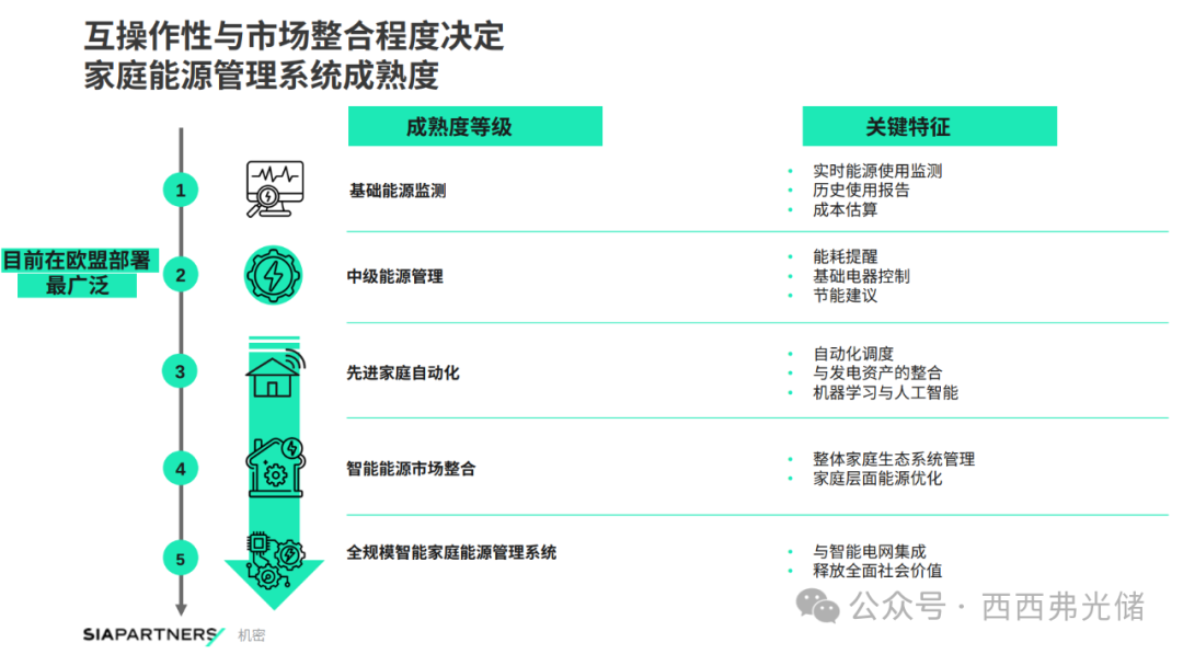 HEMS的发展并非一蹴而就,其成熟度可依据互操作性和市场整合的深度,划分为五个等级: