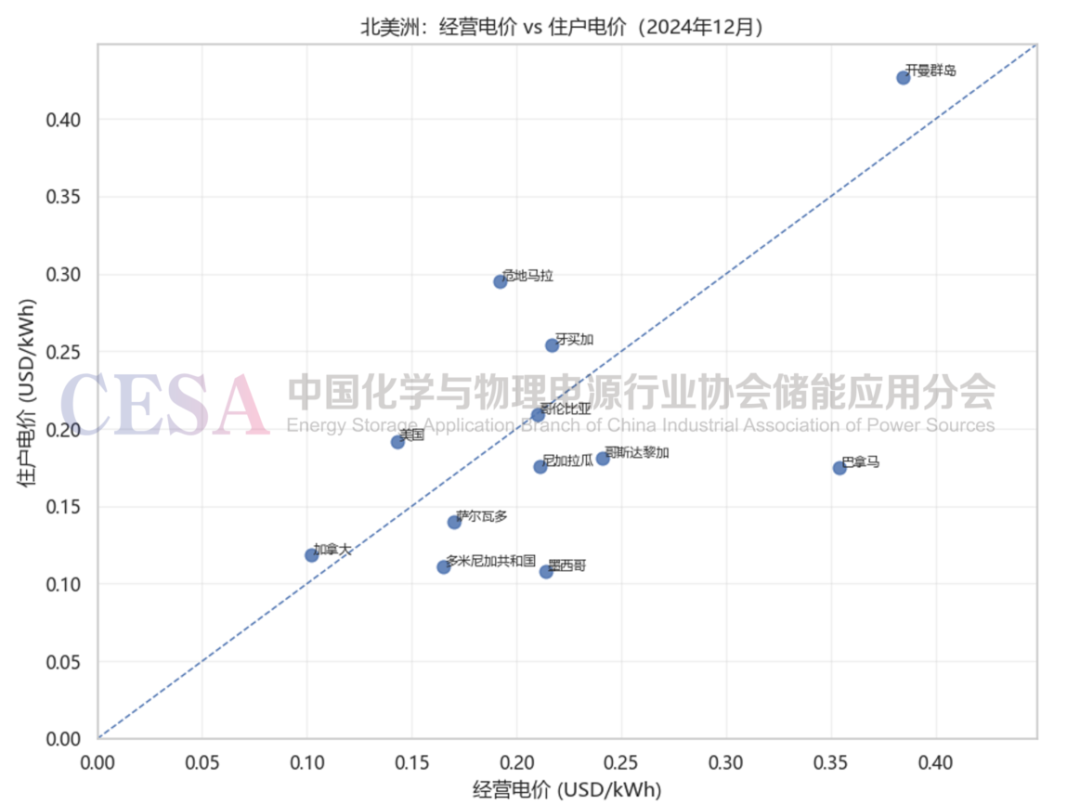 在广阔的拉丁美洲和加勒比岛屿地区,电力问题则更为严峻。一方面,存在像危地马拉(0.295美元/kWh)这样居民电价极高的国家,储能的经济性一目了然。另一方面,百慕大(0.487美元/kWh)和开曼群岛(0.427美元/kWh)等岛屿经济体的电价更是冠绝全球,这背后是其对昂贵、污染且供应不稳的柴油发电的严重依赖。对于这些地区而言,储能与光伏结合的解决方案,是实现能源独立、降低经济成本、保障民生发展的根本路径。