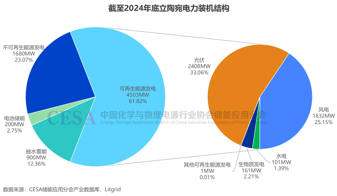 2025年继续保持增长态势,据CESA储能应用分会产业数据库不完全统计,截至2025年8月,立陶宛电力总装机规模达到7.733GW,光伏和风电装机规模进一步提升。