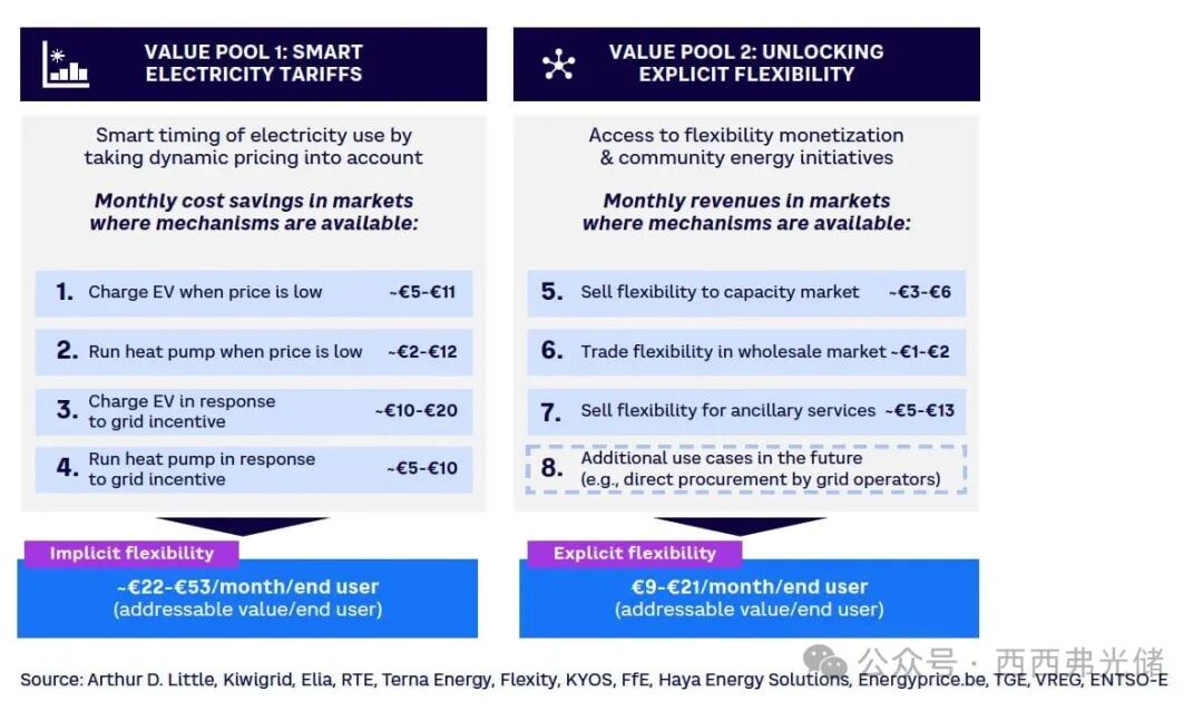 图 1. 每个住宅终端用户通过隐性和显性灵活性获得的节省