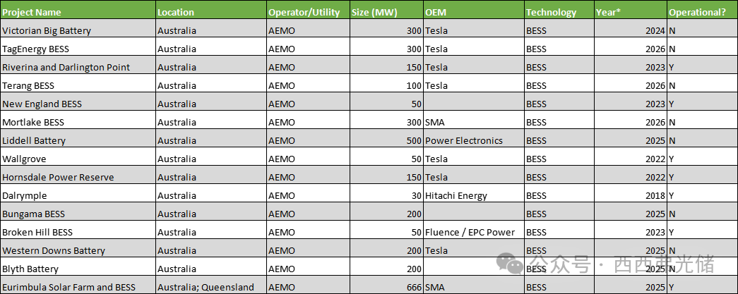 图:澳洲已部署或在建的 GFM 项目