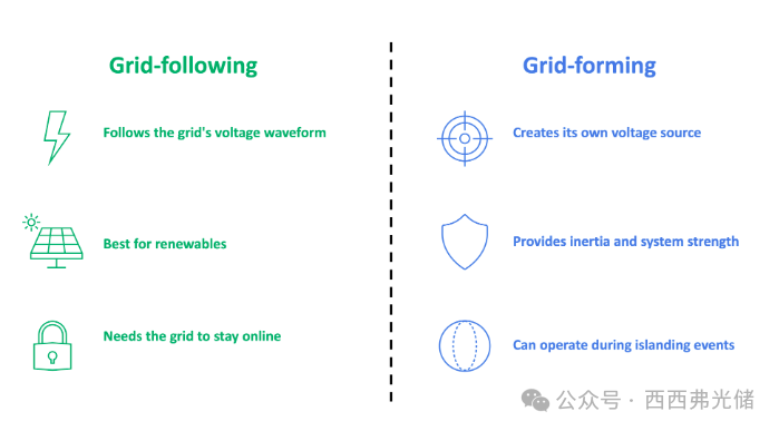 传统的光伏和储能项目大多采用跟网型(Grid-Following, GFL)逆变器。这类逆变器如同电网的“追随者”,依赖电网提供稳定的电压和频率参考,其主要功能是将有功功率最大化地注入电网。然而,在电网扰动期间,它们无法主动提供支撑,甚至可能因保护机制而脱网,加剧系统的不稳定性。