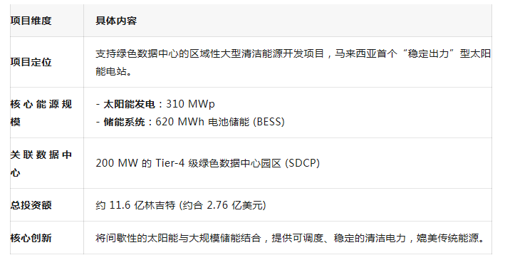马来西亚砂拉越州正在推进的大型光储综合体项目,是一个将可再生能源与数字基础设施紧密结合的战略性工程。它旨在通过大规模的“太阳能+储能”系统,为高性能绿色数据中心提供稳定、清洁的电力,从而推动区域经济的绿色与数字化转型。