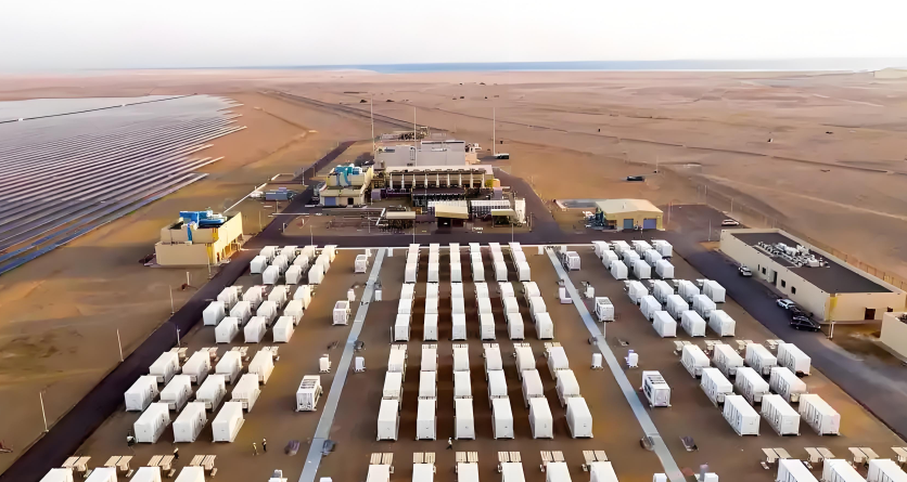 另一方面,针对特定地区的场景化解决方案大量落地。天合储能Elementa2Pro5MWh系统,集成相变材料冷却技术,用水量较传统液冷方案减少90%,匹配沙漠缺水环境;晶科储能以离网直流耦合系统,解决偏远区域泵站的稳定供电难题;中国电建山东电建三公司则创新打造“光伏+储能+内燃机”智能微电网,为沙特“沙漠岩石”酒店提供全天候电力,并有效规避沙尘侵蚀风险。