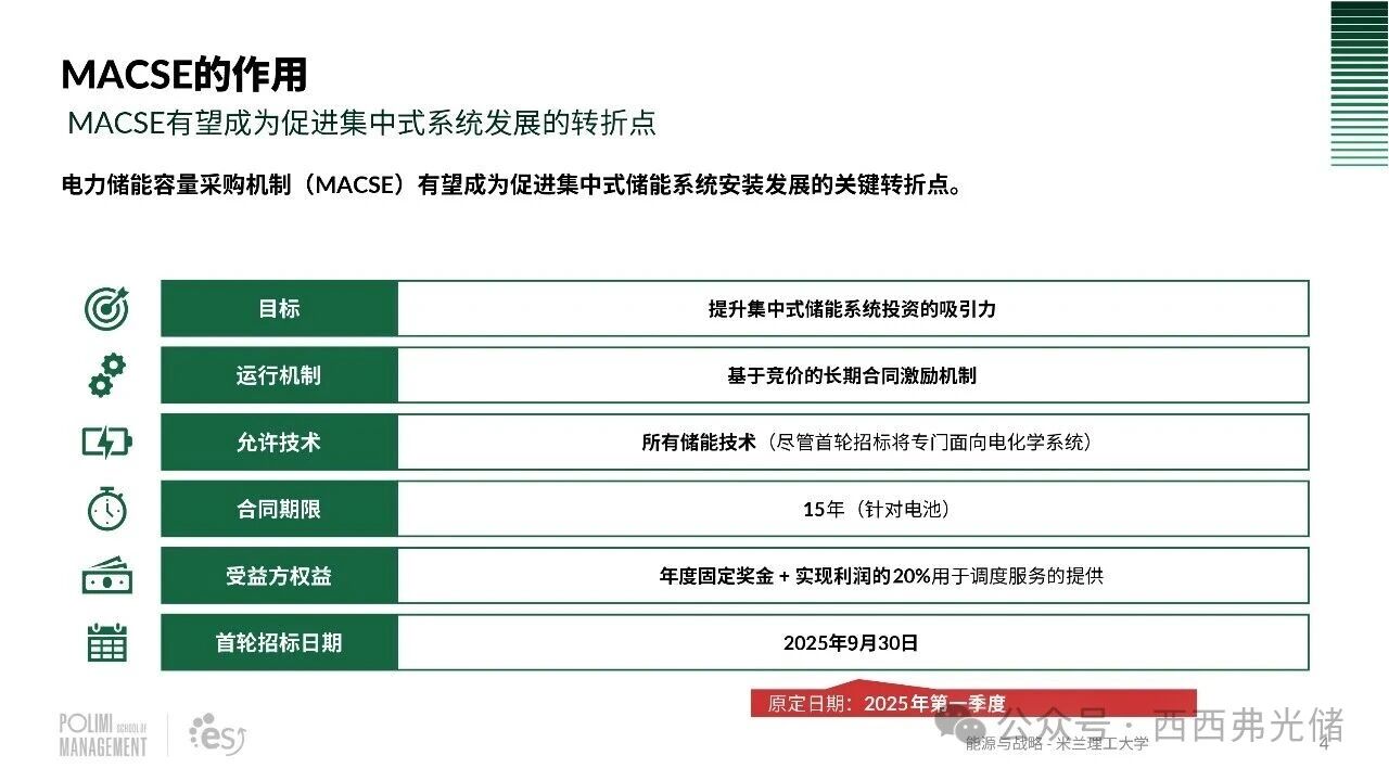 MACSE(电力储能容量采购机制)被视为推动集中式储能系统发展的决定性转折点。