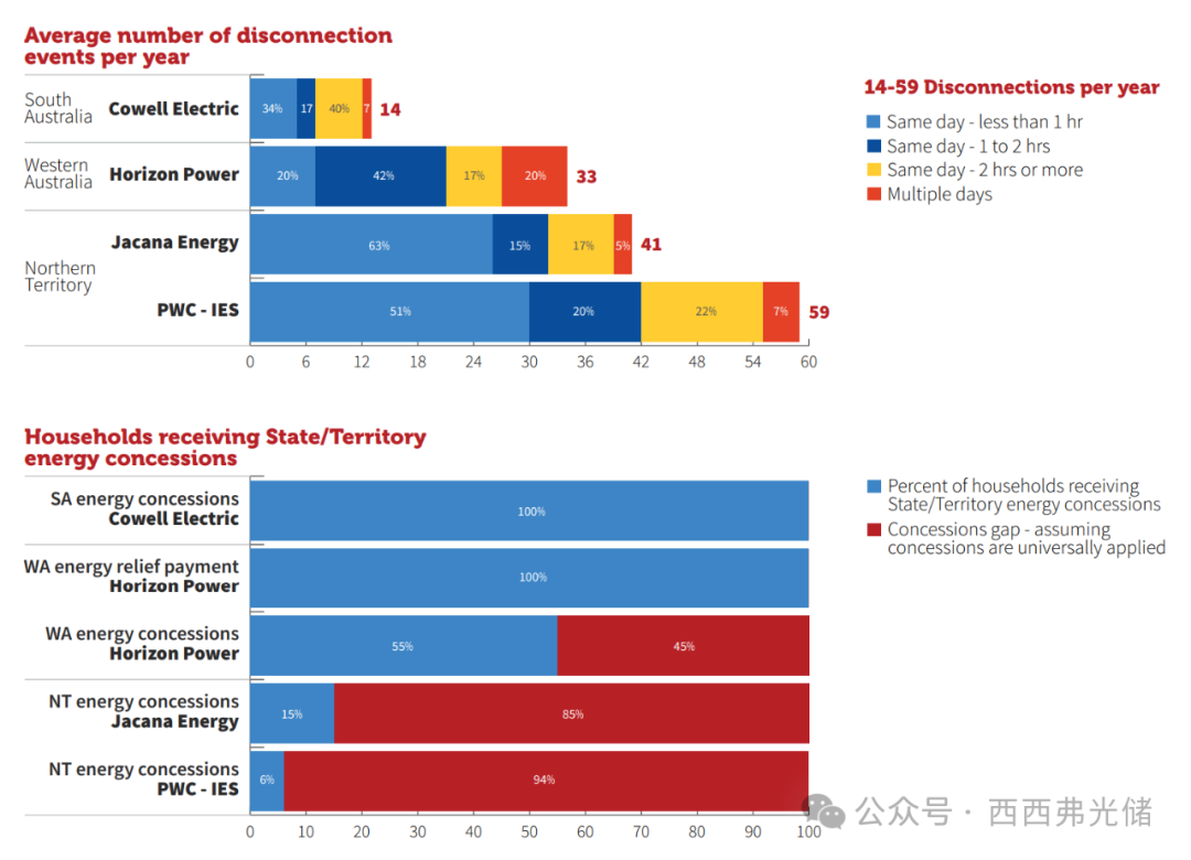 断电已是日常: 在12个月的时间里,三个州和领地共发生了44万起断电事件,预付费社区的家庭,平均每年要经历 49 次断电——几乎每周都会“掉线”一次。在北领地,情况尤为严重,断电频率最高可达每年 59 次,且每次恢复时长通常超过两小时。