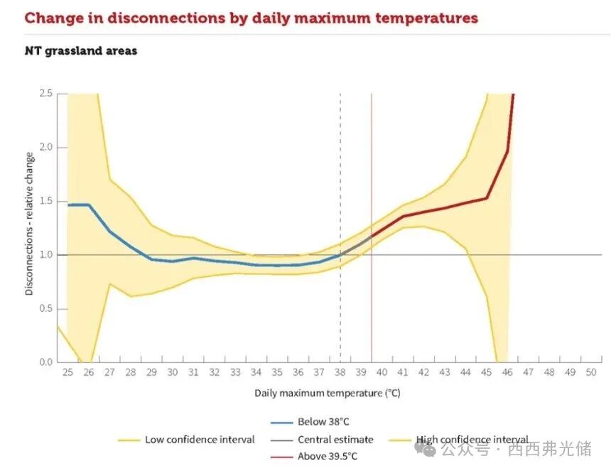 高温是断电导火索: 极端高温是断电的“催化剂”。当气温超过 40°C 时,断电率会显著翻倍。在北领地中部,高用电量家庭在酷热天气下当天断电的概率高达三分之一。
