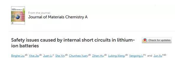 第一项成果:Safety issues caused by internal short circuits in lithium-ion batteries(锂离子电池内部短路引起的安全问题)。