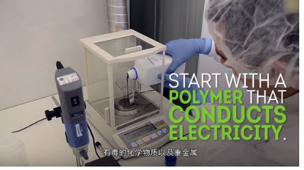 其实现原理为:导电聚合物与植物纤维素、甘油等物质进行合理配比,以实现电池效果。