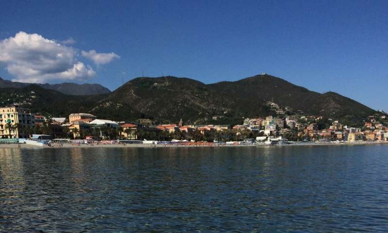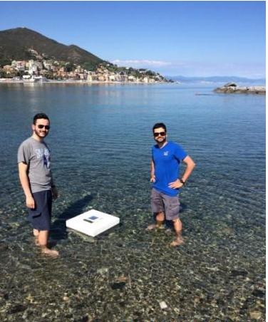 在利古里亚海(意大利瓦拉兹)进行测试的太阳能蒸馏器。