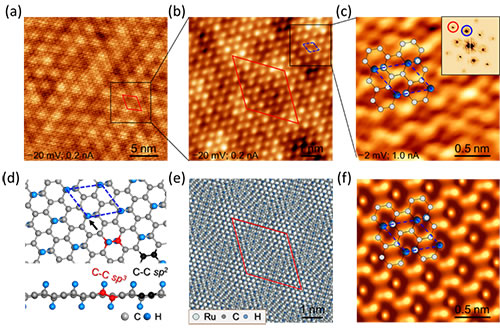 图2. 晶态三分之一氢化石墨烯高分辨STM图、结构模型及STM模拟。