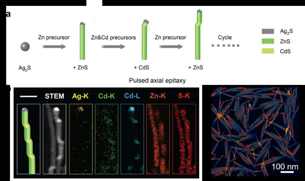 近日,中国科学技术大学俞书宏教授团队与多伦多大学萨金特团队合作,设计了一种“脉冲式轴向外延生长”方法,成功制备了尺寸、结构可调的一维胶体量子点-纳米线分段异质结,该结构是类似竹节结构的纳米“竹子”复合异质结,可以充分利用太阳能,并将其有效转化为氢能源。相关研究成果已于近日发表在了《自然·通讯》上。