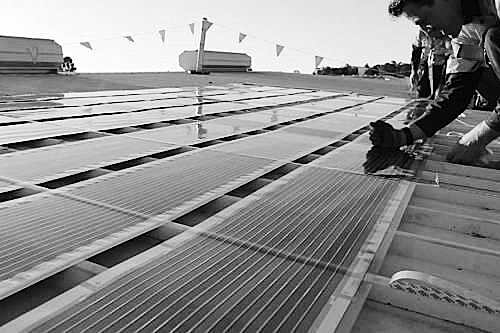 200平方米的薄膜太阳能电池安装在澳公司厂房屋顶