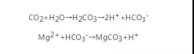 下列两等式为菱镁矿在形成过程中,如何从大气除去二氧化碳的化学式: