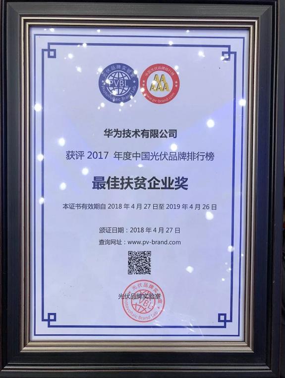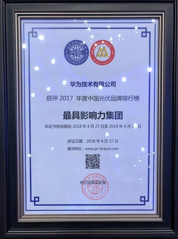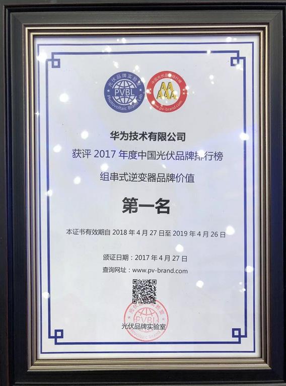 根据权威第三方机构数据,华为智能光伏2015~2017年,连续三年出货量全球第一。是名副其实的光伏领跑者第一品牌、光伏扶贫第一品牌、分布式光伏首选品牌和老百姓最喜爱的品牌,本次荣登“中国光伏品牌排行榜”多项榜单榜首,名副其实,众望所归。随着智能时代的来临,5G、物联网、云计算、人工智能等新兴技术正在加速能源行业的数字化转型,华为将把数字世界带入每个电站,每个新能源企业,助力合作伙伴成为智能时代的领跑者。