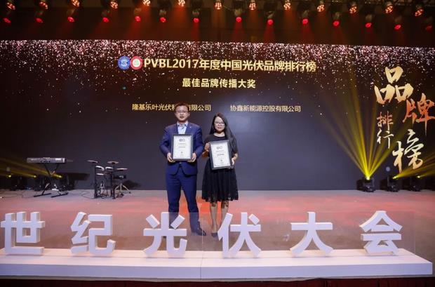 4月27日,由世纪新能源网、光伏品牌实验室(PVBL)联合主办的“2018第三届世纪光伏大会”在上海召开,会议发布了2017年度“PVBL中国光伏品牌排行榜”,隆基乐叶凭借超高市场份额和口碑,实力上榜“2017年度中国光伏组件品牌10强”榜单,并荣膺“2017年度中国光伏最佳品牌传播奖”。