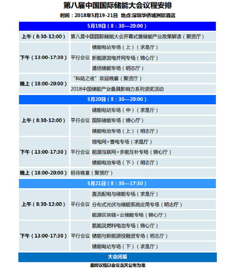 【承办单位】 中国化学与物理电源行业协会储能应用分会 中国储能网 参会注册成功将获得:储能产业研究报告、会刊、餐饮及茶歇席位等。 注:2017-2018年最新版《中国储能产业应用研究报告》数量有限,先到先得。