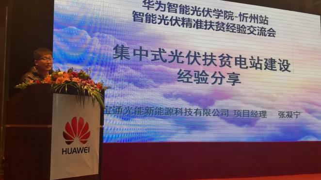 代县宝通光能新能源科技有限公司项目经理张凝宁对集中式光伏扶贫电站建设经验进行了精彩分享,他指出:“降低建设成本、减少不必要的冗余,让系统最简化。逆变器作为连接交直流的核心点,一定要选择可靠品质和长期服务的供应商,华为智能光伏做到了。”