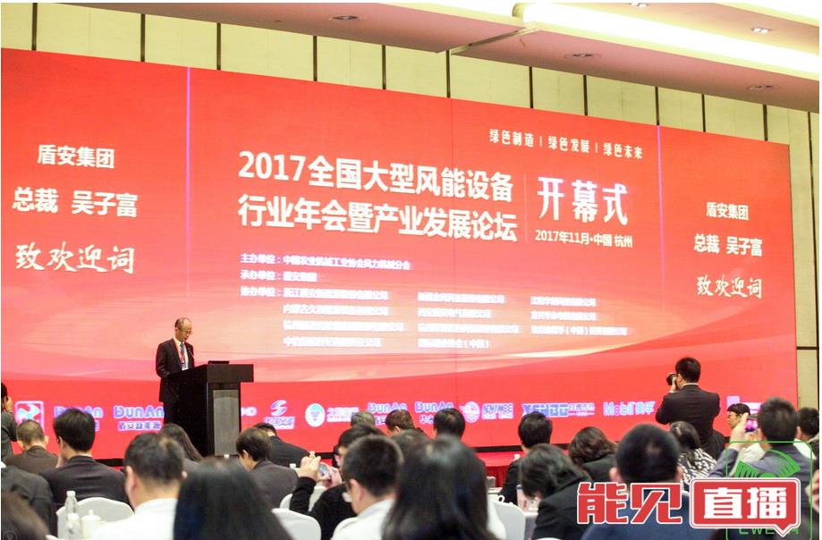 会议开幕式上,浙江盾安集团吴子富总裁2017全国大型风能设备行业年会暨产业发展论坛致辞。