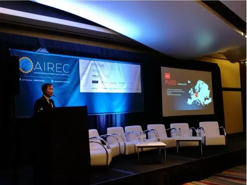 10月2日,阿根廷2017年可再生能源大会(AIREC)在首都布宜诺斯艾利斯拉开帷幕。隆基乐叶作为全球最大的单晶组件制造商参加展会,并在论坛发表了主题演讲。