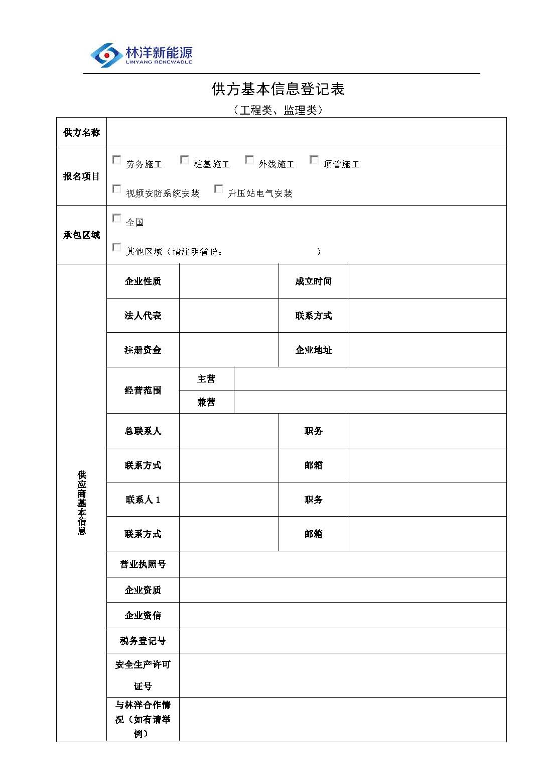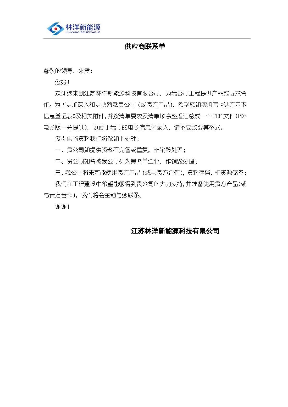 六、报名方式:请登录--林洋新能源网站(http://www.linyangpv.com.cn/)--》招标动态--》招标公告--》下载供方信息登记表--》填写完整后与资格证明材料一并发送至指定邮箱;