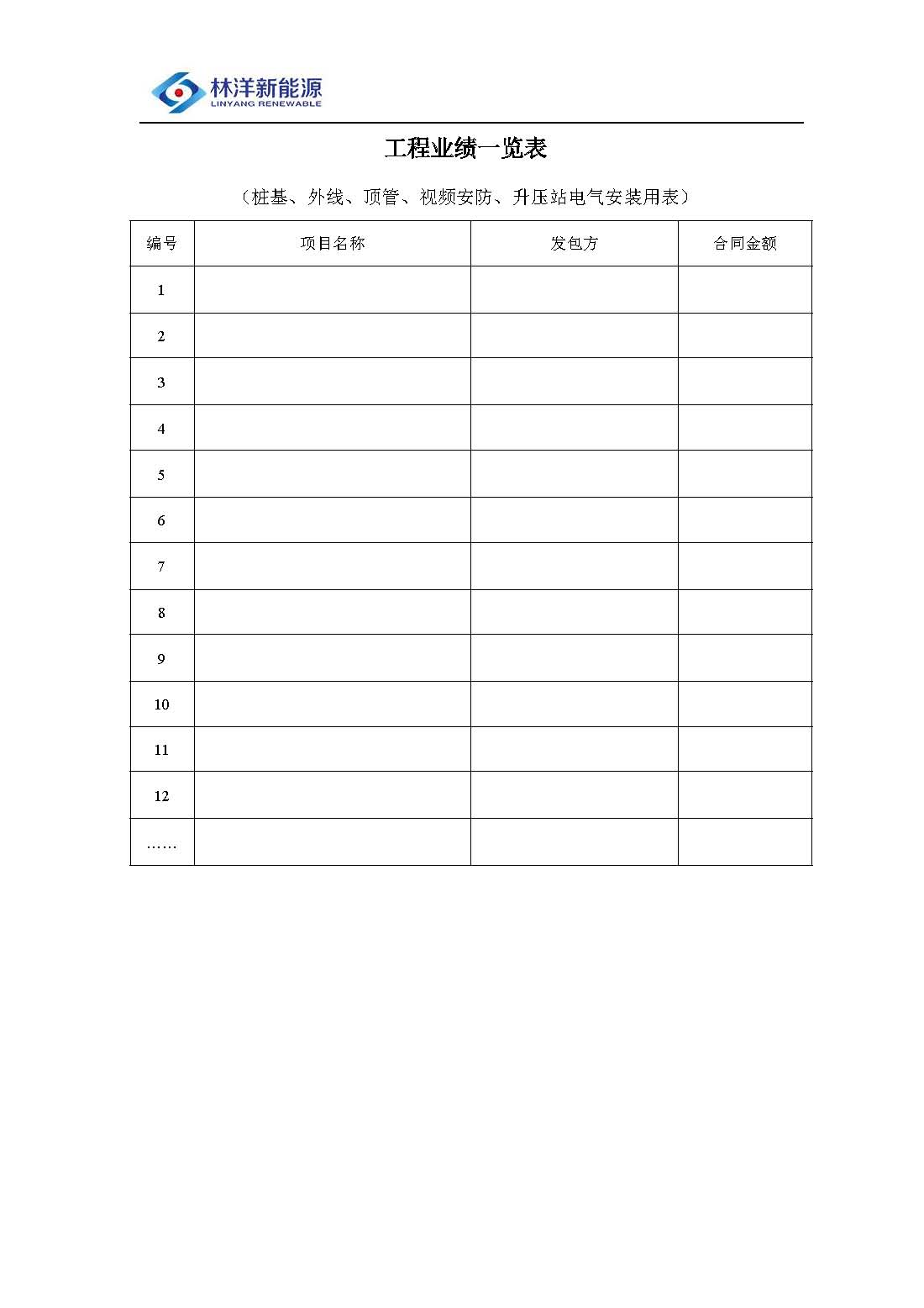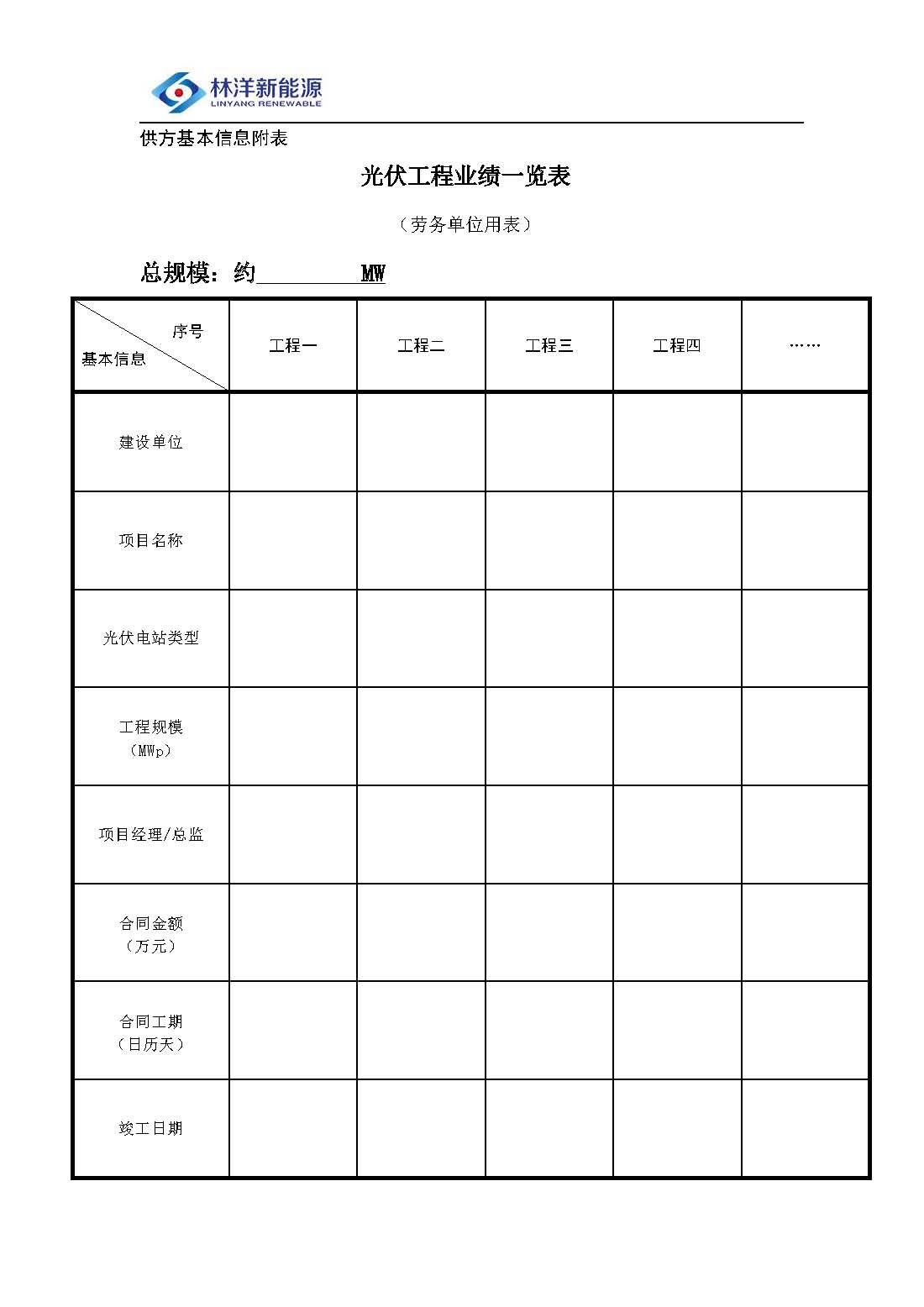 3.3.1 工程承包商基本信息:工程业绩一览表(近三年,劳务需提供光伏业绩)。