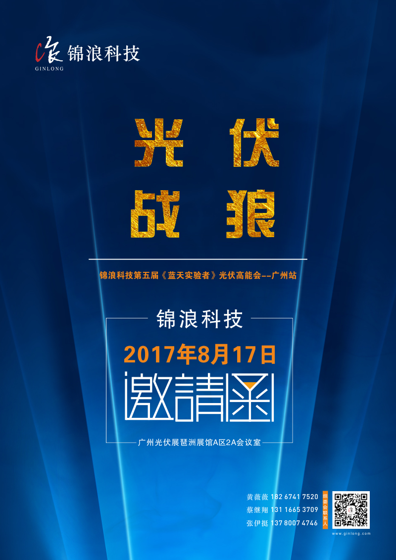 2017年8月17日,广州光伏展琶洲展馆A区2A会议室,由锦浪科技主办的《蓝天实验者》第五届光伏高能会--广州站将会一一给出答案。