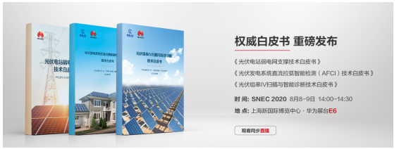 华为将在8号下午发布《光伏电站弱电网支撑技术白皮书》,9号下午与权威第三方联合发布《光伏发电系统直流拉弧智能检测(AFCI)技术白皮书》和《光伏组串IV扫描与智能诊断技术白皮书》。