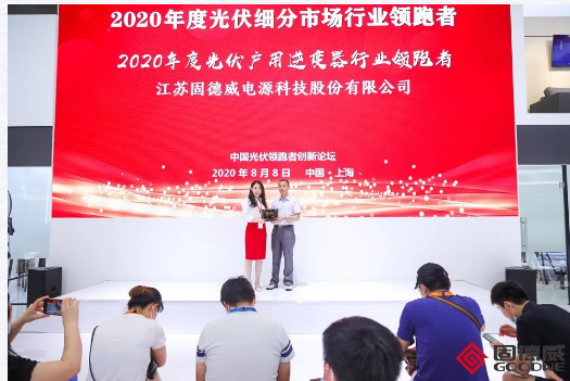 固德威获得由光伏领跑者创新论坛颁发的“户用逆变器领跑者”证书,在颁证仪式中上海太阳能学会副秘书长曹松杰表示:固德威是国内最早一批进入分布式光伏领域的逆变器供应商和解决方案服务商,固德威在分布式光伏市场积累了深厚的实践经验,成立十年来不断研发创新,精益求精,深耕光伏产业,执着于系统的优化和产品性能的不断提升。在国家对户用光伏的大力推动下,固德威成绩卓著,成为户用逆变器的领跑者。