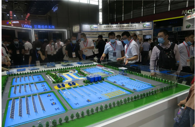 展商观看沙盘模型,体验通威“渔光一体”魅力