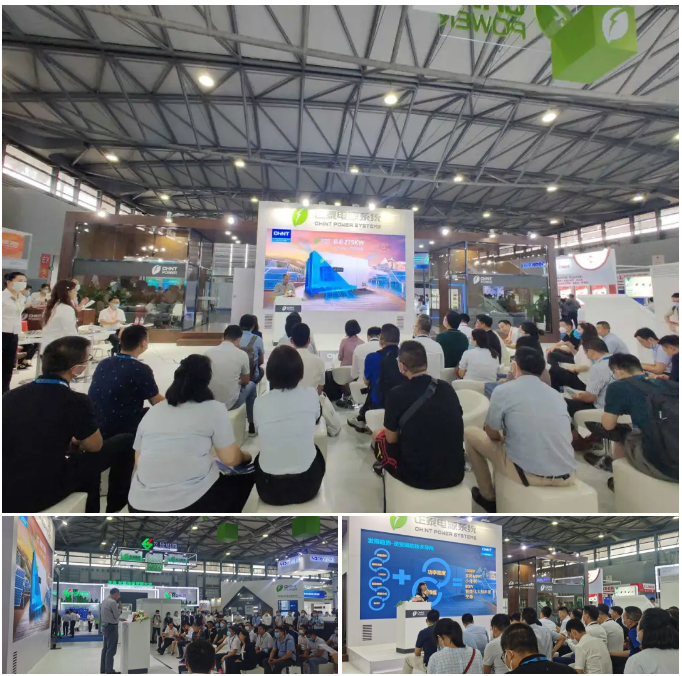 SNEC开幕伊始,正泰展台现场便人头攒动、络绎不绝,参会的专业观众、行业专家、新闻媒体以及正泰邀请的各路嘉宾都聚集在正泰电源展台区域,了解和询问正泰电源展出的产品以及解决方案,也都期待着全球最大的组串式逆变器的发布。