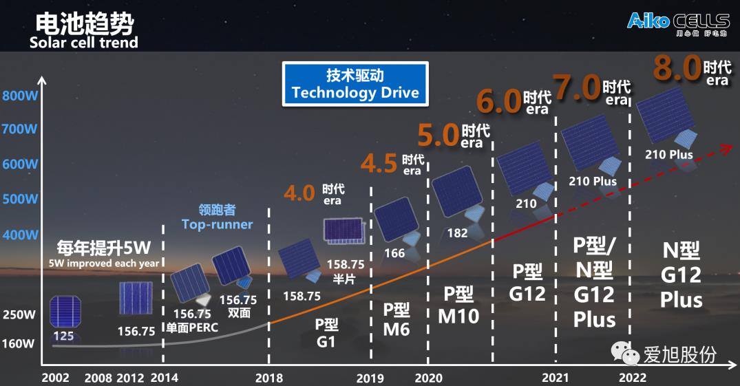 同时,爱旭将在“大尺寸电池”的技术平台上与下游组件客户、上游硅片供应商以及所有的伙伴通力合作、不断创新,持续提升大尺寸产品的转化效率和质量,明年底为500W、600W、甚至700W的组件提供转化效率为23.5%以上的高效电池。