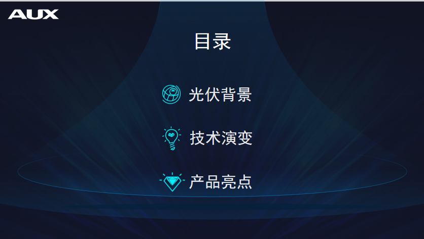 段总主要从三个方面进行了阐述。分别是光伏背景、技术演变以及产品亮点。