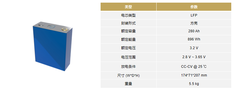 280Ah高功率密度电芯,内部集成过充保护,泄压阀等保护设计