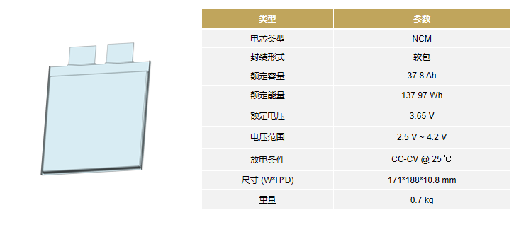 2C电池系统 —— 电芯规格