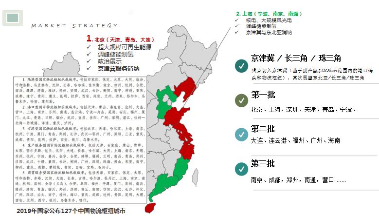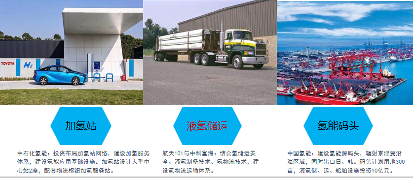 布局加氢站与打造氢能码头,中国有大量副产氢及丰富的可再生能源制氢资源,可经液化通过港口运输江、浙、沪及南方沿海地区,同时也可出口到日、韩、东南亚。中国氢能有限公司计划在可再生能源丰富区域制备氢气,并联合具备石化生产资质的园区,建设氢能储运码头,以满足氢能市场需求。