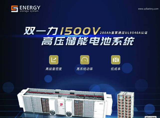王东维先生继续说道:“随着1500V高压器件和在光伏行业的应用,使得直流高压器件已经大幅降低,为储能直流1500V系统成本的降低奠定了器件基础。双一力280Ah首家通过UL9540A的高能量密度、低成本、高系统效率的基于直流1500V的高压系统,每簇电池可串联更多的电芯,同样容量的系统电池簇的数量可以大幅减少,这就使得电池到汇流柜或逆变器的直流线缆,保护熔丝等器件大幅减少。直流电压的提高带动交流电压的提高,交直流线损和变压器损耗均有所降低,逆变器效率更高,储能电站系统效率预期可以提升5-10%。”