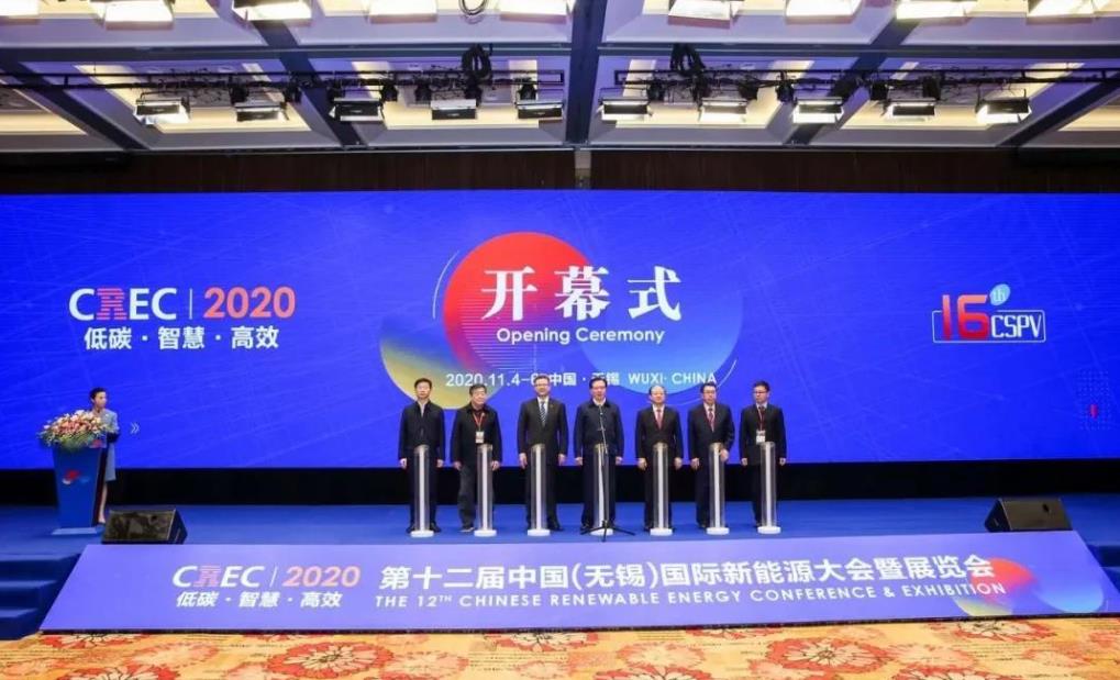 11月4日上午,由中国国际商会、无锡市人民政府主办的“第十二届中国(无锡)国际新能源大会暨展览会(CREC2020)”在无锡君来世尊酒店隆重开幕。无锡市委书记黄钦宣布大会开幕,中国国际贸易促进委员会副会长、中国国际商会副会长陈建安,中国能源研究会常务副理事长史玉波,CSPV组委会主席、国务院原参事、中国可再生能源学会原理事长石定寰,国家能源局新能源和可再生能源司副司长任育之,无锡太极实业董事长、十一科技董事长赵振元,无锡市委常委、无锡市政府常务副市长朱爱勋出席开幕式并致辞,无锡市政府副市长周常青主持。