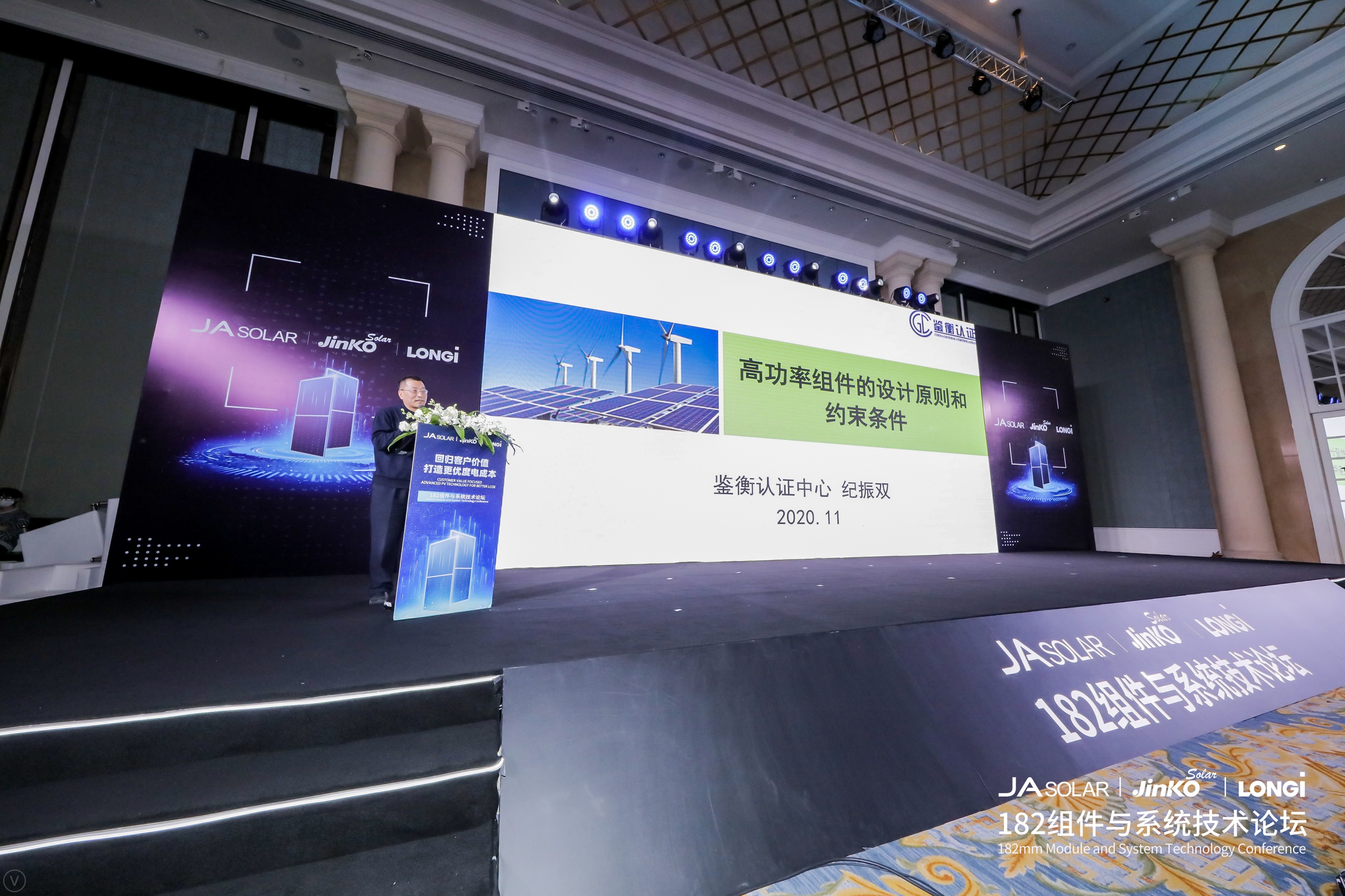 2020年11月12日,由晶澳科技、晶科能源、隆基绿能联合举办的“回归客户价值,打造更优度电成本”的182组件与系统技术论坛在上海成功召开。本次论坛邀请了逆变器企业、支架企业、电力设计院、EPC企业及第三方认证机构就182组件的设计理念、生产成本、产业配套、系统应用以及产品认证等做了全方位的分析。